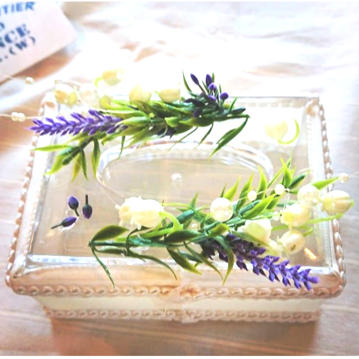 すずらんとラベンダー、パールをあしらったポケットティッシュケース作り