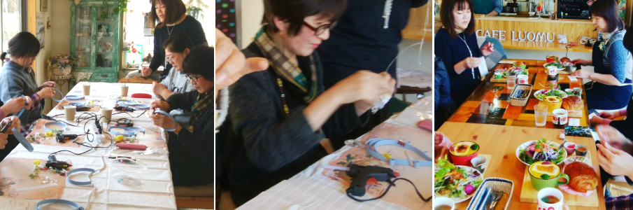 マルシェや、フラワークラフトレッスン、ライブなど、ルオムではさまざまなワークショップを開催しております。お友だちと、ご家族と、どうぞお越しください。